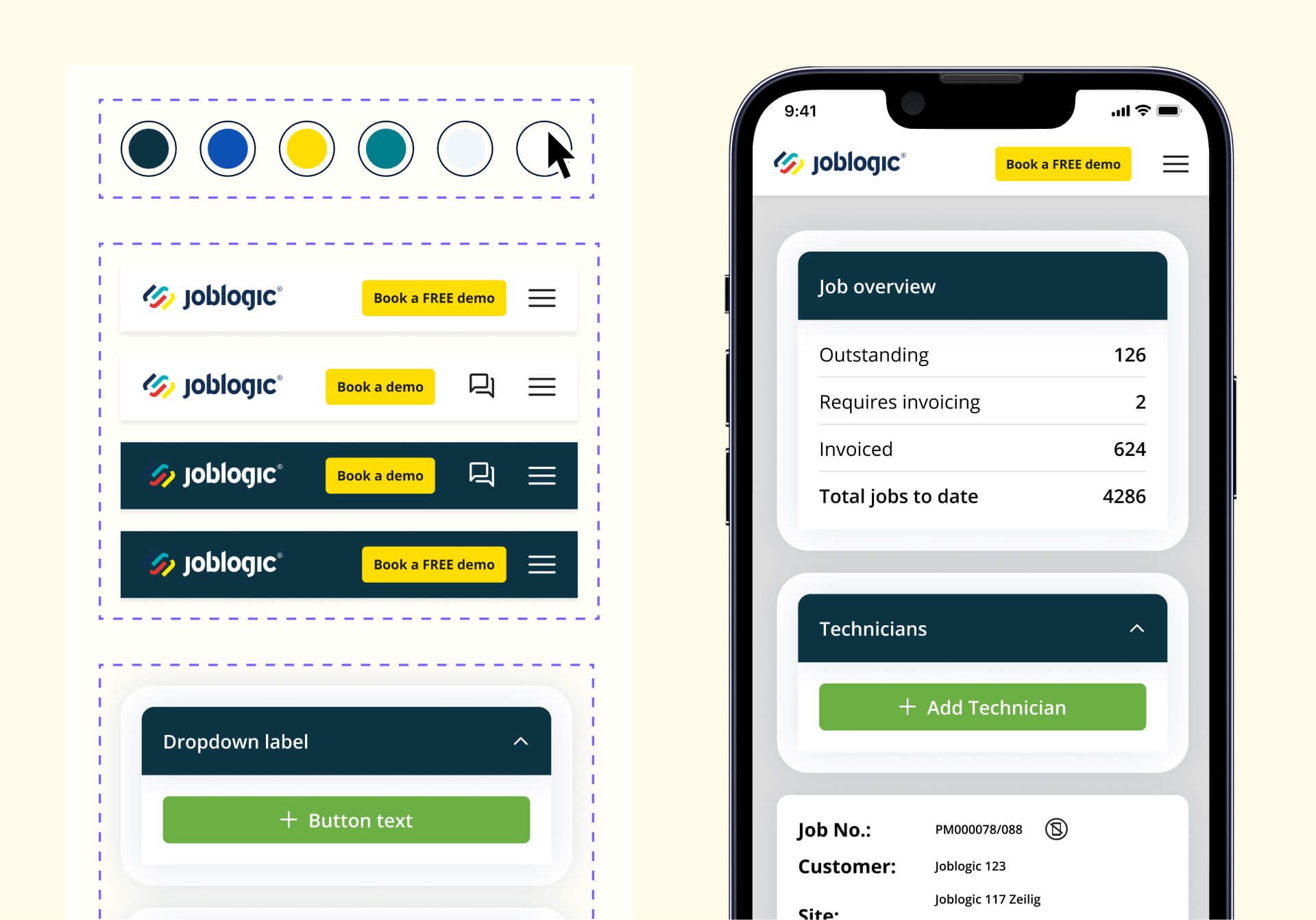 Glue's Design Systems was key in transforming Joblogic's brochureware website, optimising their cloud-based platform's visibility and communication. Our approach centred on developing a cohesive, scalable design system, which included a thorough evaluation and restructuring of various website components. We focused on enhancing elements such as testimonials, case study tiles, news articles, blog pages, and templates. Attention was also given to global navigation, footer design, typography, colours, and iconography, ensuring a consistent and appealing aesthetic across the platform.